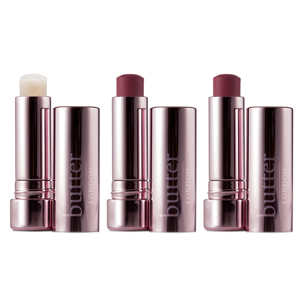 Give your lips some more TLC and get them irresistibly prepped with butter LONDON Lippy Lip Scrub. Designed and formulated to pair perfectly with our Tinted Lip Treatment, this luxe next-level Sugar Buttercream Treatment is made with 100% natural sugar. Infused with skin-nourishing ingredients, butter LONDON natural sugar scrub exfoliates and treats dry, cracked lips while providing instant hydration, all in one easy-to-use stick. Next, pucker up to a fuller, more voluptuous looking pout with the creamy Plush Rush Tinted Lip Treatment in Double Down and Double Up. This lip balm coats lips in a sheer wash of colour with a cushiony feel that is positively indulgent. Formulated with Murumuru Seed Butter, Shea Butter and Castor Seed Oil, Plush Rush Lip Tint features a unique outer and inner layer that seamlessly work together to deliver a rush of conditioning lip hydration.
