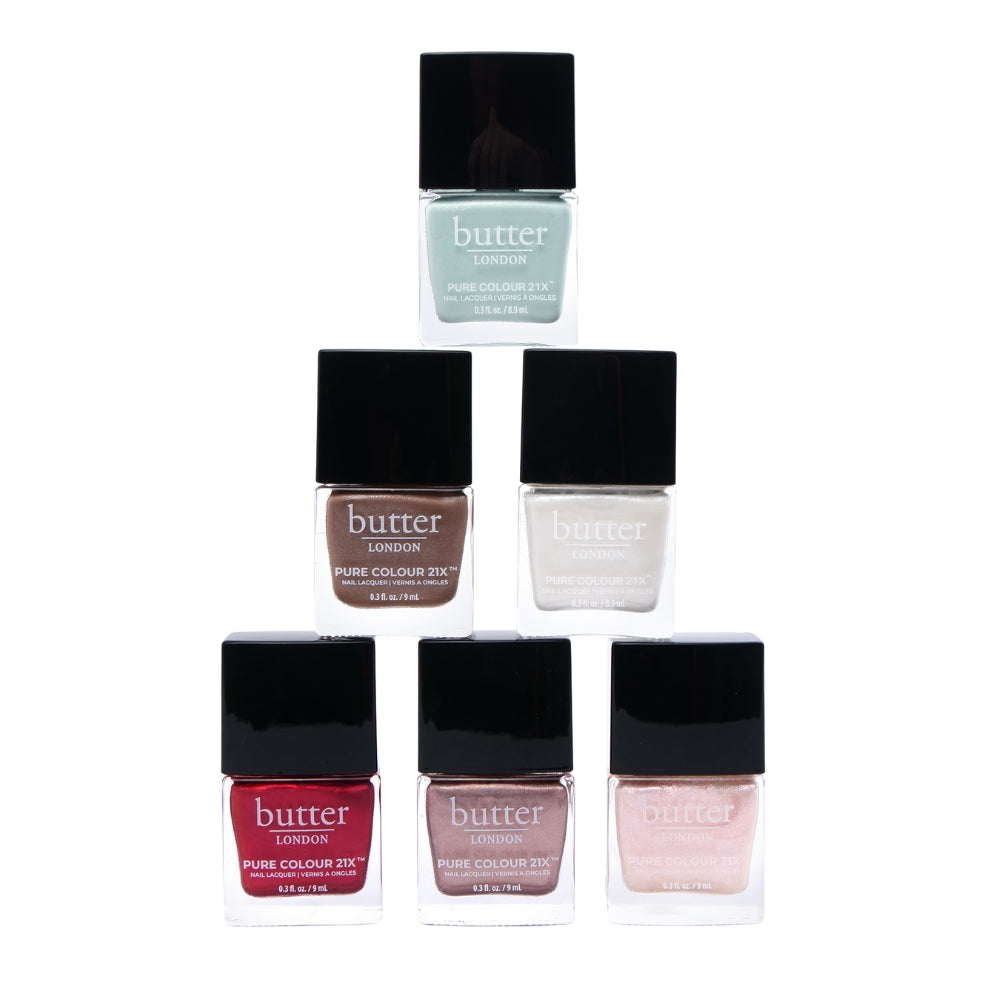 Bring the sparkle this season with the Holiday Sparkles Nail Lacquer Kit — a dazzling 6-piece collection of Pure Colour 21X shades, perfect for every festive occasion. Featuring a mix of iconic and NEW shades, Knees Up, Bubbly Rose, Sassy Lassie, All Hail the Queen, Frozen Loch, and Branwen’s Pearls, this set delivers everything from bold metallics to soft shimmers and timeless neutrals. Whether you’re dressing up for a holiday soirée or adding a hint of shine to your everyday look, there’s a shade for every celebration. Find your sparkle this holiday season!