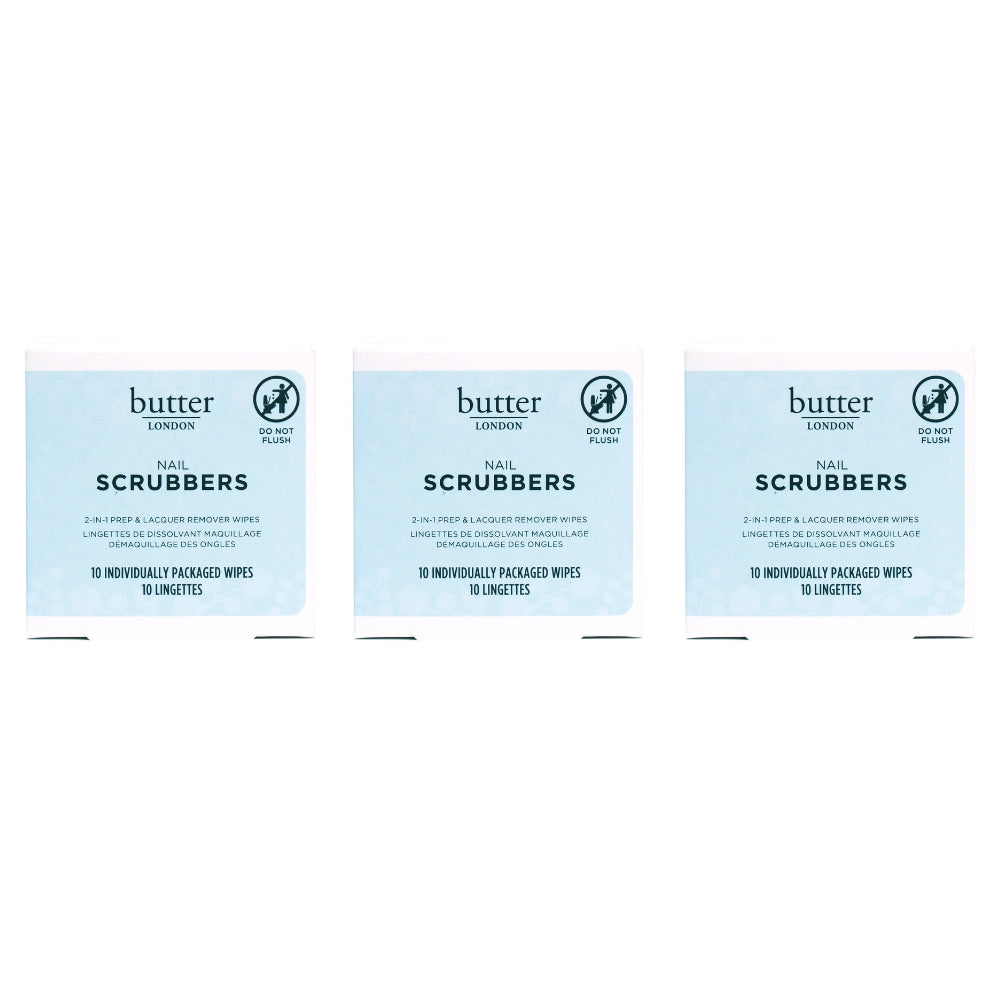 A butter LONDON best-seller and total cult favorite, now in a trio! These dual-sided wipes make polish removal (and nail prep!) a total breeze. One swipe lifts away stubborn lacquer, dirt, and oil while conditioning nails with hydrating botanicals. Perfect for travel, touch-ups, or your at-home mani station, because clean, nourished nails are always in style.