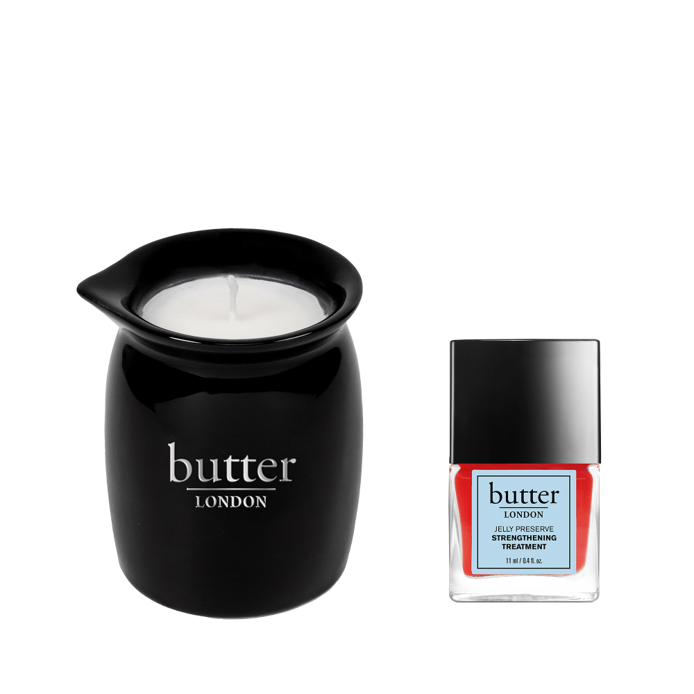 Treat your nails and hands to a self-care moment with this indulgent two-step treatment duo. The Champagne Fizz Manicure Candle melts into a warm, hydrating oil to soften and nourish cuticles, while the Strawberry Rhubarb Jelly Preserve Nail Strengthening Treatment helps restore dry, brittle nails with a sheer, glossy finish. Together, they deliver salon-level results from the comfort of home.